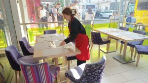 • servească clienți reali, punând în practică regulile de igienă, comunicare și ospitalitate